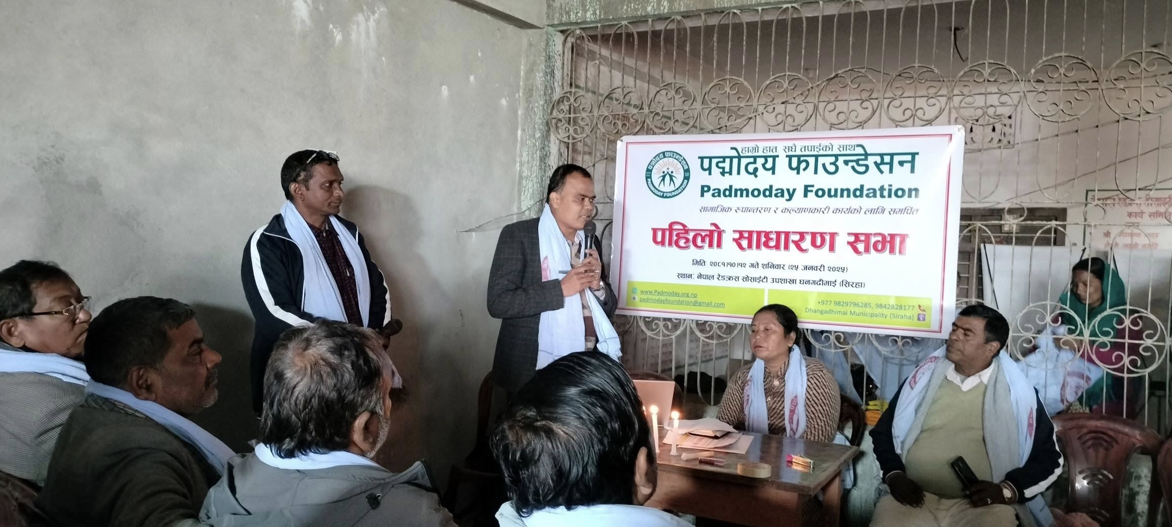 Padmodaya Foundation successfully conducted its first Annual General Meeting (AGM) on January 25, 2025, at Dhangadhimai Municipality. The event marked a significant milestone for the organization, which has been actively engaged in various social welfare activities across the region.